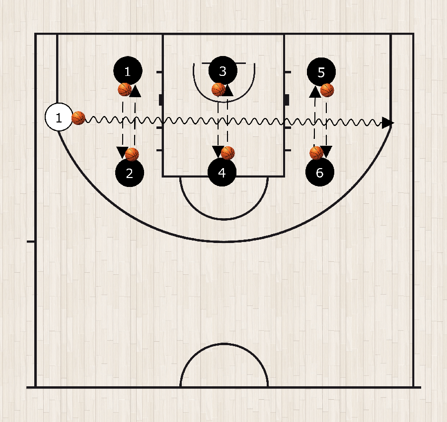 OPZIONE POST BASSO Mentre la palla vola dalle mani dell’esterno a quelle dell’interno, il secondo rimorchio dovrà essere pericoloso senza palla giocando un taglio (se difesa non schierata) oppure portando un blocco diagonale per l’esterno sul lato debole.