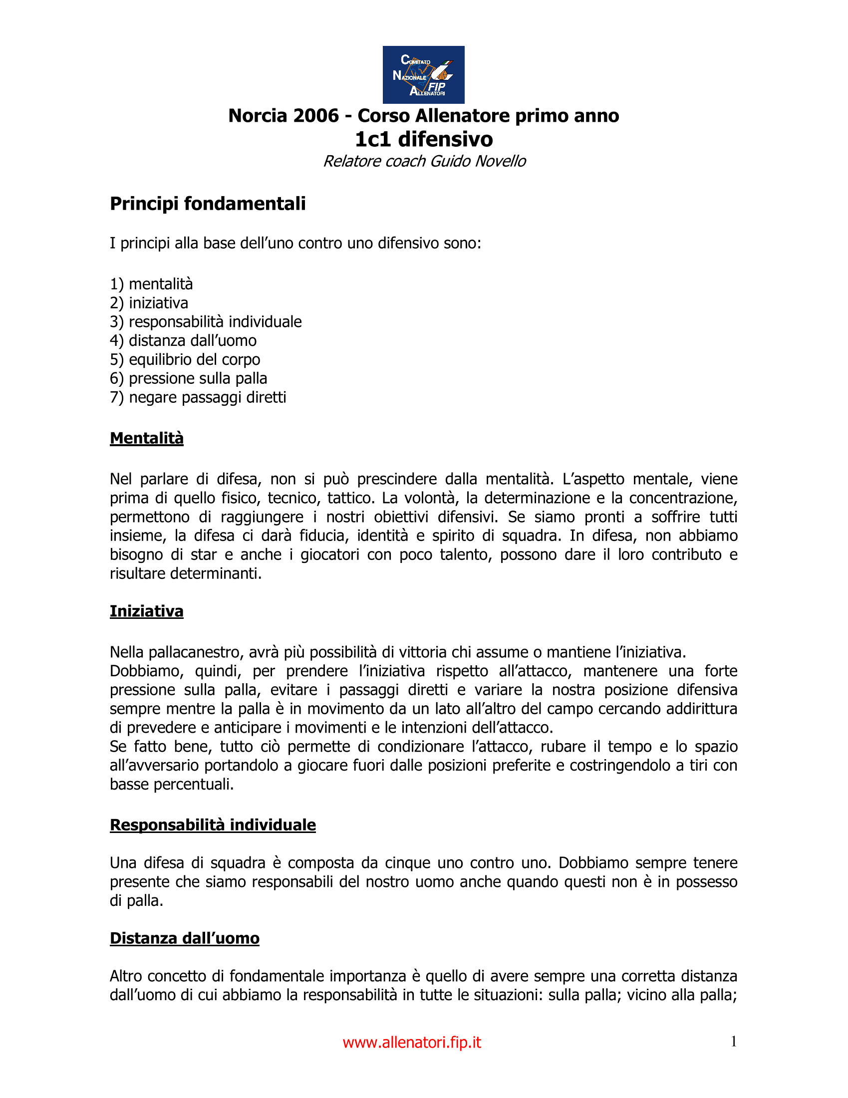 Parole chiavi: Miglioramento dei fondamentali difensivi