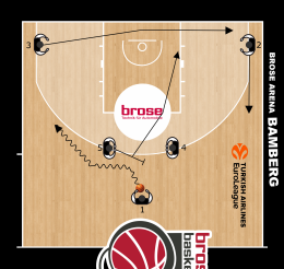 Vediamo un gioco di attacco alla difesa ad uomo utilizzato dal Brose Bamberg di coach Andrea Trinchieri durante una gara di Eurolega.