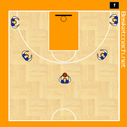 I giocatori sono spaziati fuori dell’arco dei 3 punti con palla al centro in posizione di punta, due ali e due angoli (o mezzo angolo, a meta’ strada tra il canestro e la linea laterale).