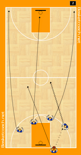 Altra variante: 1, 2 e 3 possono portare avanti la palla se prendono un rimbalzo difensivo, mentre 4 e 5 faranno apertura ad 1.