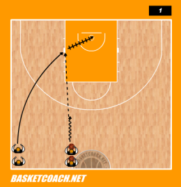 Su due file a meta campo, una con pallone l'altra senza. Partenza in palleggio, passaggio al compagno che corre sulla corsia laterale. Ricezione e tiro di corsa, dopo il tiro chi ha passato prende il pallone e rimette per il compagno che si smarca per ricevere. Si cambia fila.